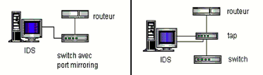 Pour alimenter un NIDS en données (contrairement au NIPS qui est en coupure), deux options principales existent : le Port Mirroring et le TAP.