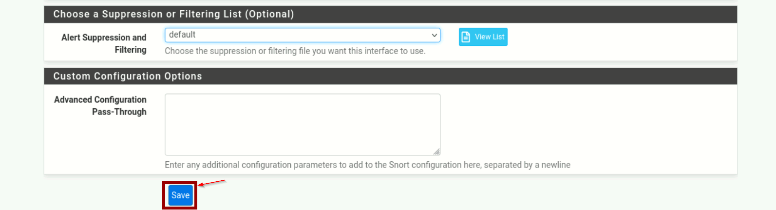 Ensuite, on va configurer les modalités d'alertes. En utilisant Snort par le biais de PFsense, il est possible d'intégrer les alertes Snort dans les journaux d'un Firewall, ainsi que de générer un fichier compatible avec Wireshark et tcpdump.