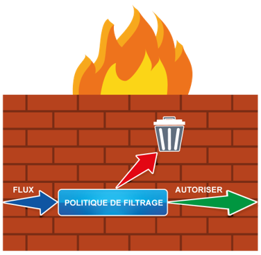 Un Firewall est un équipement responsable du filtrage des flux entrants et sortants d'un réseau. Cette frontière peut être entre Internet et votre réseau local, entre deux réseaux locaux, ou entre une machine et le réseau local.