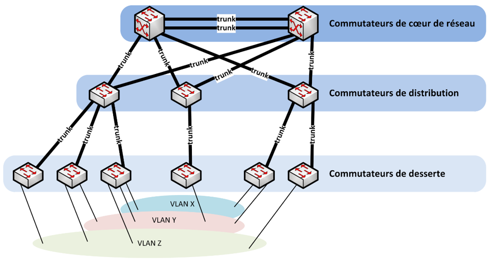 3️⃣ Les commutateurs de desserte : connectent directement les équipements utilisateurs (PC, téléphones IP).